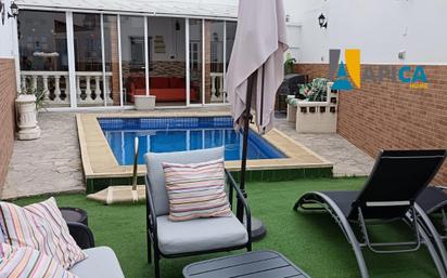 SE VENDE CASA ADOSADA CON PISCINA , EN SEMICENTRO EN LA LINEA DE LA CONCEPCIÓN CON 214 M2 APROX (SEGÚN CATASTRO). LA VIVIENDA CONSTA DE: PLANTA BAJA : hall, salón con chimenea, cocina con comedor, aseo completo, habitación multiusos, patio con cristalera, piscina con ducha, trastero, y garaje 1ª PLANTA : hall, 4 dormitorios, balcón, y 1 baño completo. TERRAZA: Solárium, lavadero y trastero. Informamos a nuestros clientes que los gastos de Notaría, Gestoría, Impuestos, así como los honorarios de nuestra agencia no están incluidos en el precio de venta. Según Decreto 218/2005, del 11 de octubre, disponemos del Documento Informativo Abreviado de la vivienda y de Seguro de Caución.