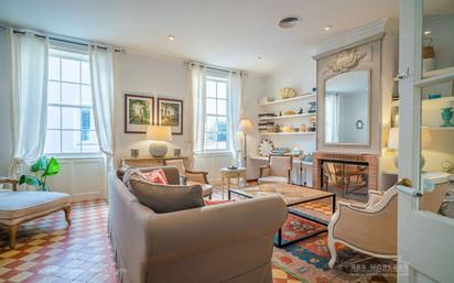 Se trata de una casa completa distribuida en 3 plantas más un sótano abovedado, una terraza con lucernario, desde donde se vigilaba el puerto antiguamente y un amplio patio con barbacoa que inunda de luz toda la vivienda. La casa se ha reformado con muy buen gusto y sin que haya perdido un ápice de su espíritu original. Nos recibe un elegante recibidor con arcos germinados que dan paso a una escalera de hierro forjado que forma el epicentro de la casa y que recibe un baño de luz a través del lucernario que corona la casa. En la planta baja destaca una bonita cocina y un amplio comedor con cristaleras policromadas que conectan con el patio. A continuación viene un distinguido salón con chimenea, 5 habitaciones amplias, 4 cuartos de baños y un aseo. Tampoco faltan elementos de confort como el aire acondicionado. Llaman la atención numerosos detalles de acabados y carpintería clásica de influencia británica muy típica de las casas señoriales de Mahón de principios del siglo XX.