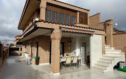 Chalet de esquina de 300 m2 construidos sobre parcela total de 275 m2. Todas las plantas están conectadas por un ascensor privado. Planta Principal con amplio salón, gran cocina equipada y amueblada con oficce, despacho, aseo y salida a porche cubierto y patio con piscina (3x5) climatizada. Planta Alta con 2 dormitorios dobles, 1 baño común y dormitorio principal con baño tipo suite, vestidor y terraza acristalada. Planta Semisótano gran salón multiusos, cocina americana, baño completo, habitación y cuarto trastero. Garaje exterior techado para 3/4 coches. Memoria de calidades de primera calidad, como persianas automatizadas y auto bloqueantes, pintura en estuco y lisa, aire acondicionado por conductos e instalación de placas solares con batería para calefacción y suministro eléctrico de toda la vivienda. Ubicada en una de las mejores zonas residenciales 'El Pijorro', año de construcción 2007. #ref:HAB_588