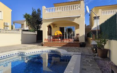 En la urbanización Les Tres Cales, en L'Ametlla de Mar, se encuentra esta magnífica casa, ideal para aquellos que buscan comodidad, privacidad y un entorno natural. Con un diseño funcional y amplios espacios, esta vivienda es perfecta tanto como residencia permanente. La vivienda se distribuye en dos plantas, con excelente luminosidad en todas sus estancias. En la planta baja, el salón-comedor de planta abierta se abre directamente al porche y la piscina, proporcionando una conexión perfecta con el exterior. La cocina abierta y totalmente equipada ofrece un diseño moderno y práctico. Además, en esta planta hay un dormitorio, ideal como despacho o habitación de invitados. En la primera planta, la casa cuenta con dos amplios y luminosos dormitorios. Una de ellas tiene un balcón que da acceso a una terraza privada con impresionantes vistas. También hay un baño familiar. El segundo dormitorio es una suite con su propio baño, que ofrece un espacio íntimo. Todos los dormitorios tienen armarios empotrados. El exterior de la casa destaca por sus amplios jardines, con una magnífica piscina privada rodeada de una gran terraza ideal para el descanso y el ocio. También dispone de garaje para dos coches y trastero para trastero. Situada en un entorno privilegiado, la propiedad se encuentra a pocos minutos de calas de aguas cristalinas y playas de arena. Además, la zona cuenta con supermercados, restaurantes y zonas de ocio, con fácil acceso al centro de L'Ametlla de Mar, un pintoresco pueblo pesquero con puerto deportivo y una excelente oferta gastronómica. Muebles y equipos, electrodomésticos deben negociarse No dude en ponerse en contacto con nosotros para obtener más información. PALMERAS IMMO es una agencia especializada en el mercado internacional. Apoyamos a nuestros clientes en todos sus trámites para la compra de su vivienda (NIE, cambio de titularidad, cargas,...). Más información y alojamiento en www.palmerasimmo.com