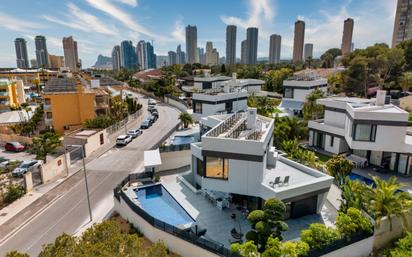 Descubre el Encanto de la Playa de PonienteSituado en la vibrante ciudad de Benidorm, este maravilloso chalet es un refugio perfecto que combina modernidad y confort. Ubicado en la deseada Playa de Poniente, cada rincón de esta propiedad ha sido diseñado para ofrecer calidad de vida y disfrutar de la belleza del entorno costero. Distribución GenerosaEste hogar cuenta con cuatro amplias habitaciones, ideales para crear un espacio acogedor para toda la familia, así como cuatro baños perfectamente equipados, garantizando que cada miembro del hogar tenga su propia intimidad y comodidad. La distribución diáfana permite una fluidez entre los espacios, fomentando una sensación de amplitud y libertad. Espacios Exteriores PrivadosEl chalet se asienta sobre un terreno de 600 m², donde se encuentra una piscina privada que invita a disfrutar de relajantes días bajo el sol. Los 50 m² de terrazas ofrecen el lugar perfecto para eventos al aire libre, cargar energías con un desayuno al amanecer o simplemente deleitarse con las vistas. El jardín exterior añade un toque verde y fresco, convirtiendo este espacio en un oasis personal. Comodidades ModernasEl diseño moderno de la villa se complementa con una serie de características pensadas para el confort y la funcionalidad. Con aire acondicionado y calefacción, disfrutarás de un ambiente agradable durante todo el año. La cocina americana, equipada de manera funcional, facilita la conexión entre el área de cocina y el resto del salón, ideal para reuniones familiares o con amigos. Seguridad y ConvenienciaEntre las comodidades adicionales, esta vivienda ofrece un garaje y espacio de almacenamiento, así como acceso a un portón de seguridad que garantiza tranquilidad. Además, contarás con un área de lavandería para mayor conveniencia y una ducha exterior para refrescarse después de un día de playa. Los cerramientos de doble acristalamiento aseguran eficiencia energética y confort acústico. Una Vida Costera en BenidormVivir en este chalet te sitúa en el corazón de una de las zonas más emblemáticas de la Costa Blanca. La Playa de Poniente es conocida por su ambiente animado y hermosas vistas al mar Mediterráneo. Aquí, tendrás acceso a una variedad de servicios, desde restaurantes y tiendas hasta numerosas actividades recreativas. Este estilo de vida costero es ideal para aquellos que buscan disfrutar del sol y la playa a solo unos pasos de su hogar. Esta propiedad es más que un simple chalet; es un lugar donde los recuerdos se crean y donde cada día ofrece la oportunidad de disfrutar de un entorno encantador. Ven y descubre lo que significa vivir en el paraíso.