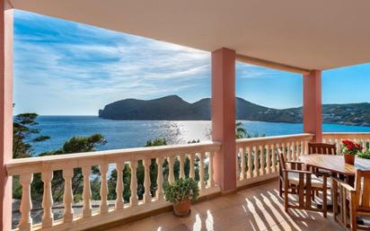 Esta elegante villa en Camp de Mar se encuentra en una ladera y ofrece espectaculares vistas panorámicas al mar Mediterráneo. La playa de arena fina se encuentra a pocos minutos a pie. En una parcela amplia, la propiedad dispone de cuatro dormitorios y cuatro baños distribuidos en dos niveles. El luminoso salón-comedor con chimenea y la cocina independiente totalmente equipada destacan por sus amplios espacios. Todas las estancias se abren a terrazas soleadas y porches cubiertos con vistas al mar. Los materiales naturales y las grandes ventanas de teca crean un ambiente cálido y acogedor. El exterior impresiona con terrazas abiertas y cubiertas, así como con una piscina que garantiza momentos de refresco y de sol en absoluta privacidad. Los atardeceres sobre el mar resultan especialmente atractivos. Otros elementos destacados incluyen un gimnasio, baño de piscina y garaje doble. El centro de Camp de Mar con playa, restaurantes, comercios y campo de golf se encuentra a pocos minutos. La proximidad al puerto de Andratx permite además un acceso cómodo a un yate privado. Esta propiedad combina el encanto mediterráneo, acabados de alta calidad y una ubicación privilegiada, constituyendo una atractiva oportunidad para comprar una villa en Camp de Mar. #ref:6990