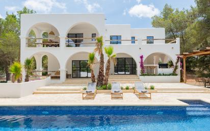 Situada en un entorno rural tranquilo, cerca del encantador pueblo de San Agustín, esta villa excepcional ofrece paz, privacidad y el auténtico estilo de vida ibicenco. Rodeada de naturaleza virgen y a tan solo 8 minutos en coche de las famosas playas Cala Bassa, Cala Conta, Cala Tarida y del animado pueblo de San José, esta propiedad combina a la perfección tranquilidad y excelente accesibilidad. Distribuida en tres plantas, la villa cuenta con 5 dormitorios y 5 baños en Suite mas un aseo, lo que la convierte en una opción ideal tanto como residencia privada de veranon como para la vida residencial. Características destacadas: Decoración elegante con atención al detalle y un auténtico aire mediterráneoAire acondicionado en toda la viviendaAmplia zona de estar y comedor con chimenea y cocina abierta de diseño en la planta bajaGrandes ventanales con acceso directo a la espaciosa terrazaEspectaculares espacios exteriores con:Gran piscinaZona de tumbonas y chill-outComedor cubiertoÁrea de barbacoaPrimera planta: 2 dormitorios, 2 baños – ambos con salida a la terrazaPlanta superior: 3 dormitorios con baños en suite y acceso directo a terrazas con vistas a la naturalezaSala multifuncional con entrada independiente – ideal como dormitorio adicional, gimnasio, oficina o estudioAseo de invitados, trastero y distribución interior muy bien pensadaVistas abiertas a la naturaleza y máxima privacidadA la venta con V.I.S. Inmobiliaria.