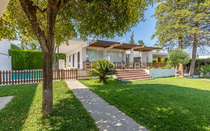 Maravilloso chalet individual con jardín y piscina, en una ubicación privilegiada y exclusiva del Aljarafe Sevillano, en una de las urbanizaciones más demandadas de Tomares y a tan solo 15 minutos de Sevilla por los diferentes accesos principales a la ciudad, contando con algunos grados menos de temperatura de diferencia con el centro de la ciudad. Destacamos su comodidad al poder hacer la vida en una sola planta de 340 m2 construidos, en una parcela de 1.040 m2 con extenso y cuidado jardín que combina césped y árboles frutales, además de contar con una gran piscina para poder disfrutar y compartir momentos refrescantes en los días más calurosos. En una planta semisótano nos encontramos un garaje privado y un trastero. Esta casa de ensueño está totalmente reformada con todo lujo de detalles para vivir confortablemente con tu familia. Casa de techos altos con grandes zonas acristaladas que inundan de luz toda la vivienda y ofrecen vistas espectaculares al jardín. Su luminosidad realza la sensación de amplitud y conexión con el entorno. La casa se distribuye en una planta con un acogedor salón con chimenea, todo rodeados de ventanales desde donde se accede a una cocina de diseño y a la zona de descanso con tres habitaciones y dos cuartos de baño. Desde una gran terraza donde compartir veladas familiares y con amigos, podemos acceder a la zona exterior ajardinada. Dispone en un extremo del jardín de un apartamento casi a estrenar con cocina y baño propios, que bien puede habilitarse como despacho o bien para salón de verano junto a la piscina. Situada en una zona donde convergen 3 localidades residenciales importantes del Aljarafe: Tomares, Bormujos y Castilleja de la Cuesta, le hace estar comunicada en pocos minutos con la capital. Dispone de acceso muy cercano de las líneas de autobús, servicios de taxi, metro, así como Hospital, colegios, institutos y universidad, bancos, supermercados, bares, restaurantes, gimnasios… Dispone también de varios centros comerciales dotados de todo tipo de servicios, tiendas, talleres, cines, casino y ocio, que por su magnífica ubicación, permite combinar la calidad de vida de poder vivir aislado en zonas ajardinadas y a la vez tener acceso en pocos minutos a todos los servicios que se necesiten, con la máxima comodidad. Tomares es el enclave perfecto para aquellos que quieren disfrutar de momentos de serenidad y actividades al aire libre en un entorno natural privilegiado. Su estratégica localización a tan sólo diez minutos del centro histórico de Sevilla y su excelente conectividad mediante transporte público y carreteras principales garantiza un acceso rápido a todos los servicios que ofrece Sevilla, además de poder disfrutar dentro del propio Tomares de una amplia gama de servicios, opciones educativas, gran oferta gastronómica, comercios locales y grandes áreas de ocio que ofrecen una experiencia completa sin necesidad de coger el coche.