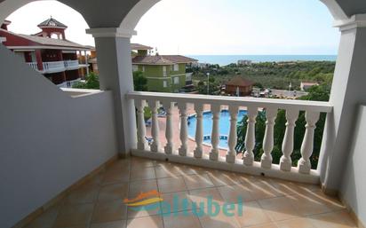 Magnífico apartamento dúplex en Residencial Nerea, con vistas al mar y a la Sierra de Irta. La Urbanización se encuentra en una zona tranquila de Peñiscola, a tan solo 5 minutos en coche del centro y de las playas, y al lado del parque natural de la Sierra de Irta y sus bellas calas. Su excelente ubicación hace que esta vivienda sea ideal tanto como destino vacacional, como para vivir todo el año. Residencial Nerea es una urbanización privada con 3 piscinas para adultos y niños, calles peatonales, área infantil, jardines y chiringuito a pie de piscina con conexión wifi gratuita. El apartamento consta de dos plantas distribuidas en planta baja (primera planta real) con salón-comedor con salida a una preciosa terraza con vistas a la piscina comunitaria y al mar, un aseo y una cocina independiente totalmente equipada; y una planta superior con 2 dormitorios (con armarios empotrados) y 1 baño completo con bañera y segunda terraza. Todo exterior y muy luminoso, con calefacción y aire acondicionado. Se vende amueblado y con electrodomésticos. Le corresponde la plaza de parking nº 13. * El precio publicitado no incluye el Impuesto sobre Transmisiones Patrimoniales (10%), ni los gastos de Notaría y de Registro a cargo del comprador.