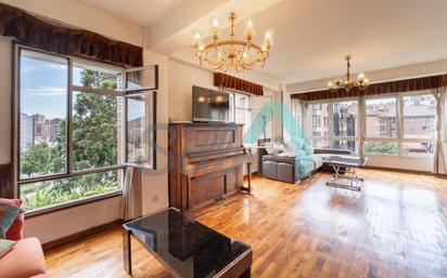 Piso en venta en zona centro de Oviedo (Asturias, España). Precio: 450.000 €. Superficie construida: 193 m2. 6 habitaciones y 3 baños. 4ª planta exterior. Plaza de garaje opcional y trastero incluido. Tour virtual 3D disponible. Piso en venta en la Avenida de Galicia, en Oviedo, junto a Villa Magdalena y a un paso de la Plaza de América. Está ubicado en la cuarta planta de un edificio construido en 1958, obra del arquitecto Ignacio Álvarez Castelao y que cuenta con servicios centrales, ascensor, acceso rodado directo al montacargas y jardín privado. La vivienda tiene una superficie construida de 193 m2 distribuidos en hall de entrada, amplo salón comedor, terraza, cocina amueblada con zona de office, despensa con acceso al montacargas, seis habitaciones y tres baños completos. Plaza de garaje opcional (20.000 € y situada en parking cercano) y trastero incluido en el precio. Cuenta con suelos de parquet y gres, calefacción central con contador individual, ventanas de PVC con doble acristalamiento y de madera antiguas, techos altos, videoportero, etc. Es exterior y muy luminosa, con orientación sur y este. Gastos de comunidad: 230 € al mes.