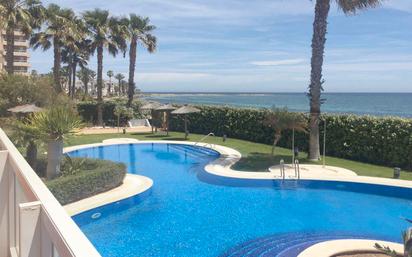 Precioso piso para disfrutarlo todo el año, dispone de dos habitaciones con armarios empotrados, dos baños uno de ellos en suite, su cocina independiente con todos los electrodomésticos de última generación, salón comedor amplio con acceso a la terraza con cerramiento para disfrutarla en invierno como en verano con vistas al Mar Mediterráneo, amueblada, piscina comunitaria y plaza de garaje subterránea. La vivienda dispone de ventiladores de techo y aire acondicionado, cercano a todos los servicios necesarios y con muy buena orientación. Si lo que quieres es disfrutar de tu vivienda tanto en verano como en invierno, ven a visitarla, te encantará!