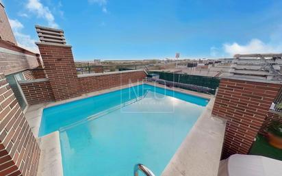 NEO Patrimonial ofrece bonito ático dúplex con piscina privada en Valdemoro. Ático dúplex exterior con piscina independiente y gran terraza, ascensor y zonas comunes con pista de pádel. Consta de 172m² construidos (Según catastro) 97m² corresponden a la vivienda, 6m² al almacén, 10m² al aparcamiento y 46m² a elementos comunes. Se distribuye en amplio salón-comedor muy luminoso, cocina independiente completamente amueblada y con terraza lavadero, dispone de 3 dormitorios, uno de ellos doble y equipado con baño en suite y dos individuales, todos ellos contienen armarios empotrados, 1 baño completo adicional, que da servicio al resto de la casa. En la planta superior, encontramos la amplia terraza donde se encuentra una bonita piscina privada. Carpintería exterior de PVC con doble acristalamiento y oscilobatiente, carpintería interior de madera y suelos de tarima en toda la casa excepto en las zonas de agua que son de gres. Calefacción y agua caliente individual de gas natural, aire acondicionado con bomba de frio y calor, armarios empotrados, domótica, puerta blindada, videoportero y piscina propia. Trastero y 3 plazas de garaje incluidos en el precio. Todos los servicios de primera necesidad al alcance: Colegios, Farmacias, Supermercados, Centro de Salud Valdemoro y Hospital Universitario Infanta Elena. Centros de ocio y restauración a su alrededor: Restaurantes, Complejo Deportivo Supera Valdemoro, Pista de Hielo Fco. Fdez. Ochoa, Biblioteca Ana María Matute y Centro Comercial El Restón, que se encuentra a 10min. Rodeado de zonas verdes muy próximas como el Parque de las Víctimas del Terrorismo o el muy conocido parque Enrique Tierno Galván de Valdemoro. Excelente comunicación de transportes. Parada de autobuses interurbanos y estación de Renfe Cercanías Valdemoro a 10 min. También a escasos minutos de las autopistas A-4, R-4 y M-506. *Impuestos ITP o IVA y gastos, notaría, registro, gestoría etc. no incluidos. NEO Patrimonial le ofrece la posibilidad de hacer cualquier tipo de reforma de esta vivienda al mejor precio.
