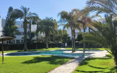 Vivienda situada en la primera planta del edificio Dragos con una amplia terraza orientado al Este. La vivienda tiene un recibidor en la entrada y a la derecha hay una cocina amplia y totalmente equipada, tiene un lavadero y también otra terraza con vistas a las zonas comunes. Hay dos dormitorios con buena privacidad ya que están separadas por dos baños. El salón-comedor es espacioso y tiene puertas correderas con salida a la terraza más grande. La vivienda está bien conservada y, se vende totalmente amueblada y equipada. En la misma escalera se asciende al garaje subterráneo donde hay un amplio trastero y plaza de aparcamiento. La urbanización La Aldea de Puerto Rey está a menos de 10 minutos andando de la playa y, es una urbanización muy bien cuidada con amplias zonas ajardinadas con dos piscinas comunitarias. También incluye uso de una zona deportiva de Residencial Puerto Rey con pista de tenis, cancha de futbol, petanca, otra piscina más y zonas de juegos infantiles.