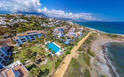 Magnífico apartamento en complejo de lujo en primera línea de playa, con terraza y jardín privado, ubicado en Casares Playa, en una prestigiosa urbanización con un encantador diseño morisco inspirado en la esencia de Al-Ándalus. Disfruta de acceso directo al paseo marítimo y a las maravillosas playas de la zona, con gran selección de restaurantes, chiringuitos y zonas de ocio. Situado en un enclave privilegiado entre Estepona y el Puerto de la Duquesa, a solo cinco minutos en coche de ambos destinos, ofrece una combinación perfecta de exclusividad, confort y un estilo de vida mediterráneo. Su orientación sur garantiza una abundante entrada de luz natural durante todo el día, creando un ambiente cálido y acogedor en cada estancia. La propiedad ha sido renovada recientemente, destacando por su cuidada decoración y excelente estado de conservación, lista para entrar a vivir. La cocina, renovada en 2023, cuenta con electrodomésticos Siemens, suelos de mármol color marfil y todas las ventanas con mosquiteras. El apartamento se distribuye en una sola planta, con dos amplios y luminosos dormitorios diseñados para ofrecer el máximo confort y descanso. Un acogedor salón-comedor con chimenea se abre a la terraza cerrada con cristal, dando al jardín, la piscina comunitaria y a la playa. La urbanización dispone de seguridad las 24 horas, garantizando tranquilidad y privacidad, y ofrece instalaciones exclusivas como dos magníficas piscinas, una de ellas climatizada, lo que permite su disfrute durante todo el año. La propiedad también incluye 2 plazas de estacionamiento subterráneo y 2 trasteros, brindando comodidad y espacio adicional de almacenamiento. Su ubicación estratégica la convierte en una opción ideal tanto como residencia habitual como inversión, gracias a su alto potencial de alquiler vacacional y de larga temporada. La proximidad a prestigiosos campos de golf, como Finca Cortesín, así como a puertos deportivos, restaurantes y todos los servicios necesarios, hacen de esta propiedad una oportunidad única. Si buscas un apartamento exclusivo en primera línea de playa, con todas las comodidades y en una de las zonas más cotizadas de la costa, no dejes pasar esta oportunidad.