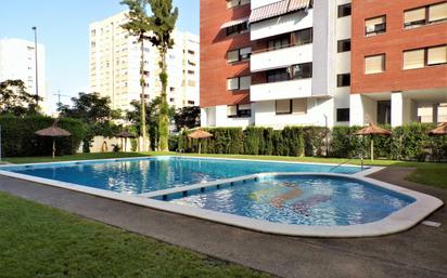 EXCELENTE OPORTUNIDAD DE VIVIR EN LA MEJOR ZONA DE SERVICIOS, ENTRE GOLF Y PLAYA Y EN UN ESTUPENDO PISO DUPLEX ESQUINA!! Situado en pleno corazón de la Avenida Miriam Blasco en un entorno social inmejorable, frente a su hermoso parque y rodeado de todos los servicios, supermercados, Colegios, Clubs Deportivos, Centro de Salud, restaurantes y cafeterías, tram a pocos metros y a 5 minutos de la Playa San Juan, Albufereta y del Golf. Urbanización familiar que dispone de piscina comunitaria, zonas ajardinadas, juegos infantiles, garajes subterráneos y trasteros. Esta completa y acogedora vivienda duplex cuenta con 2 terrazas exteriores acristaladas (18mts2 y 17mts2 cada una) que le permitirán disfrutar de gran comodidad y espacio extra en cualquier época del año! Posee 118mts2 construídos (108 mts2 útiles) y se distribuye en: Planta Baja : Recibidor con armario empotrado, baño, escalera, salón comedor con acceso a una de las amplias terrazas exteriores, espaciosa cocina independiente amueblada y equipada, lavadero, acceso a segunda terraza esquina exterior acristalada. Planta Alta : 3 dormitorios dobles (uno con baño en suite), 2 baños. Suelos de madera y cerámica, calefacción, aire acondicionado frío/calor, ventiladores de techo, mosquiteras, electrodomésticos, armarios empotrados. Incluye plaza de garaje subterránea de 18 mts y trastero de 7 mts2. Bajo con orientación Norte, Este, Oeste. Año de construcción: 1999