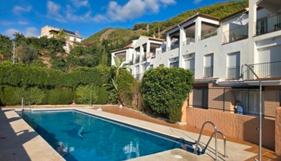 EXCLUSIVA: Adosado Alcázar Nueve: 3 dormitorios, 2 baños. Dormitorio principal con baño en suite y balcón privado orientado al oeste. Dos dormitorios adicionales, ambos con armarios empotrados y balcones. Amplia zona de salón-comedor con dos puertas que dan al patio. Gran terraza privada, parcialmente cubierta con atractivas vigas de madera. Cocina independiente equipada con horno, placa y fregadero. Escaleras de granito y suelos de calidad en toda la vivienda. Ventanas de doble acristalamiento en excelente estado.Garaje privado con acceso desde la parte trasera de la propiedad. Piscina comunitaria y jardines bien cuidados.Bajos gastos de comunidad – aprox. 50–60 € al mes.