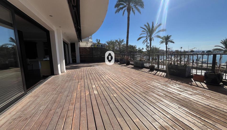 Dispone de cuatro dormitorios dobles, todos con baño en suite, uno de ellos con vestidor, mientras que otros dos comparten baño. El salón, amplio y muy luminoso, ofrece impresionantes vistas al puerto y conecta a través de grandes ventanales con una espectacular terraza delantera, ideal para disfrutar del entorno mediterráneo. La vivienda también incluye un acogedor patio interior que comunica con el salón y con uno de los dormitorios, un baño adicional de uso común con bañera y una zona independiente de lavandería.