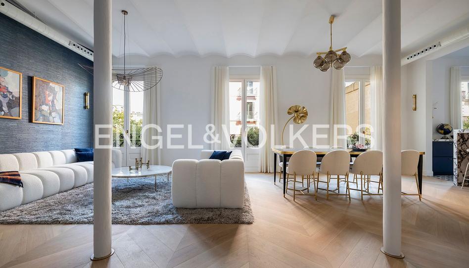 Un impresionante apartamento de 183 m2 en el tercer piso que disfruta de abundante luz natural gracias a 4 puertas de balcón que dan a la calle Girona. Recién renovado y diseñado.