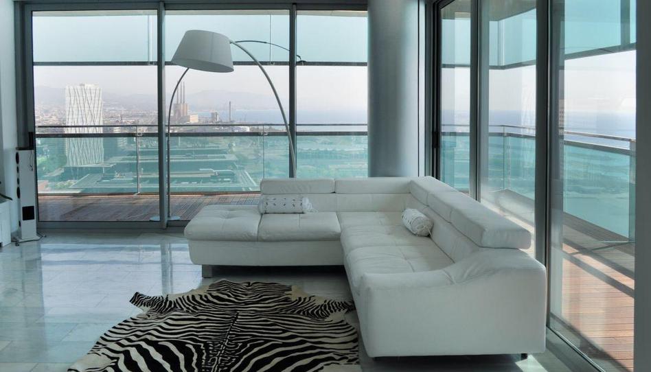 Este impresionante apartamento de 146 m2 se encuentra a escasos metros de La Mar Bella, considerada una de las mejores playas de la ciudad. Situado a más de 80 metros de altura, ofrece unas vistas panorámicas espectaculares del mar y de toda la ciudad condal, gracias a sus imponentes ventanales de cinco metros de altura.
