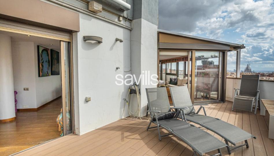 Savills, presenta esta excepcional propiedad, sobreático único que destaca por sus impresionantes vistas panorámicas de Barcelona.