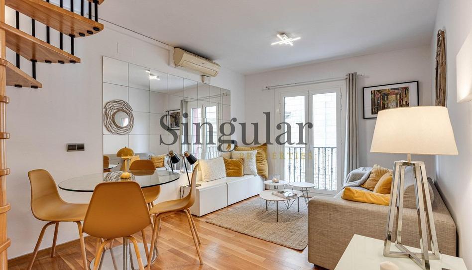 Ático dúplex con una encantadora terraza que se asoma a los tejados de la ciudad, con vistas abiertas y despejadas a la montaña de Montjuïc y a la cercana plaza de Pla de Palau. Donde disfrutar de agradables comidas y veladas en pareja o con amigos. Terraza acondicionada con toma de agua y puntos de luz.