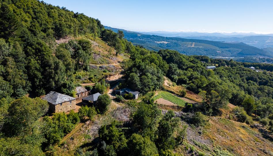 La finca ofrece sensación de aislamiento total abrigada por el bosque, con vistas panorámicas a las altas cumbres de los Ancares. El terreno es fértil y cuenta con agua abundante. En la parte superior de la finca se encuentra una gran fuente de piedra pública.