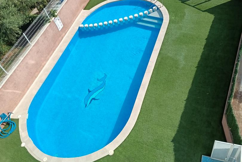 Disfruta de tus días de relax en la piscina comunitaria y olvídate de complicaciones: se vende totalmente amueblado y con electrodomésticos., tiene aparto de aire acondicionado frío-.calor y orientación este.