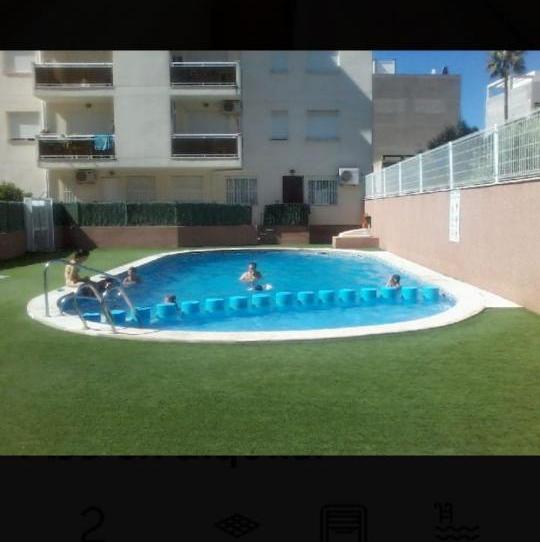 dispone de dos dormitorios amplio salón con salida a terraza de 45 metros con dos pérgolas, mesa y sillas y salida directa a piscina. Tiene bomba de aire frío y calor. cocina todas equipada. Incluye placa de parking y trastero. En la misma calle está Mercadona ylid y a 2 minutos centro de pueblo. cercanías de colegios e instituto.