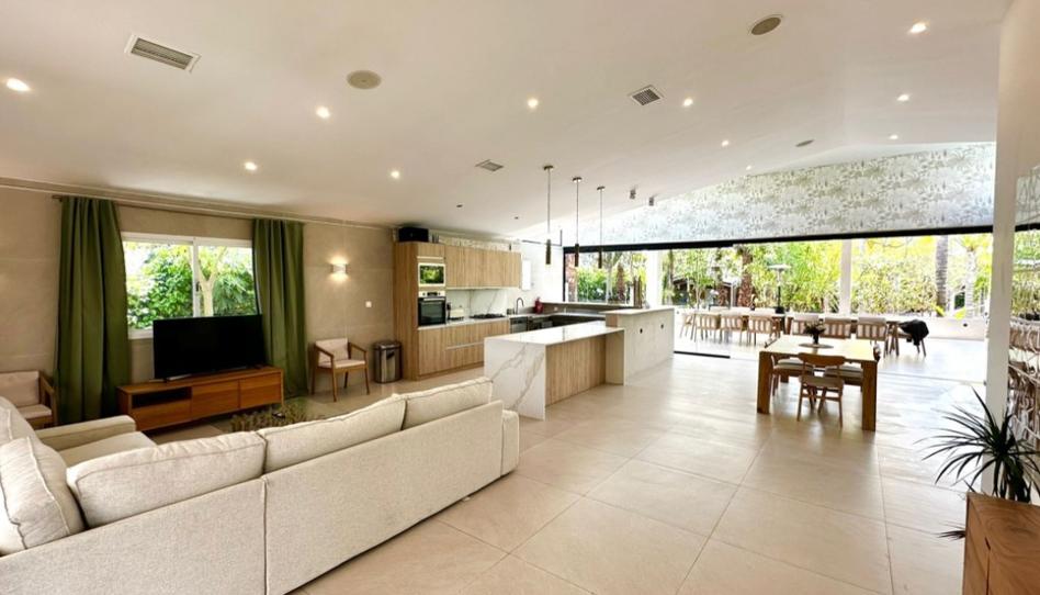 Jardín maduro con palmeras y vegetación exótica, diseñado para el descanso y la vida al aire libre. Dispone de gran piscina, estanque ornamental, terrazas cubiertas, zonas de sombra, barbacoa y porche con capacidad para 4 vehículos. La finca cuenta con sistema fotovoltaico que cubre el 100 % del consumo eléctrico y riego eficiente con agua filtrada.