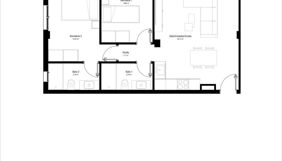 El piso dispone de dos habitaciones amplias y luminosas, diseñadas para ofrecer el descanso y la intimidad que tanto valoras. La distribución está pensada para aprovechar al máximo cada rincón, permitiendo que el sol ilumine cada espacio durante todo el día. Su acogedor salón te invita a crear memorias inolvidables y a disfrutar de tu tiempo libre en compañía de tus seres queridos. Además, cuenta con un balcón privado, donde podrás disfrutar de las vistas mientras saboreas tu desayuno o una copa de vino al atardecer.