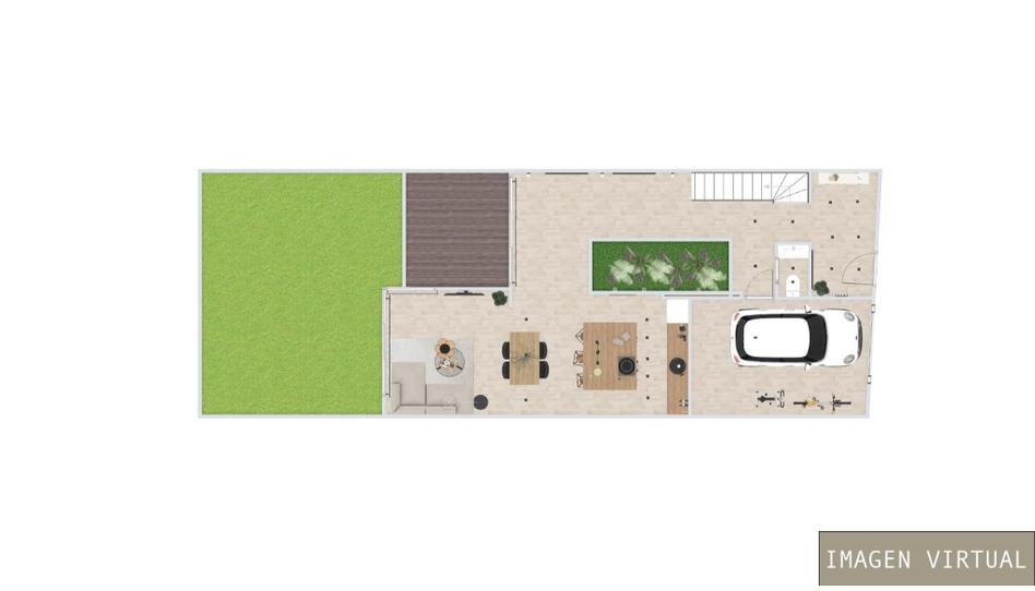 Jardín , jardín interior , terraza cubierta , terraza en planta de arriba ,preinstalción frio y calor por toda la casa ., garaje para tener todas las comodidades y acceso desde dentro de casa.