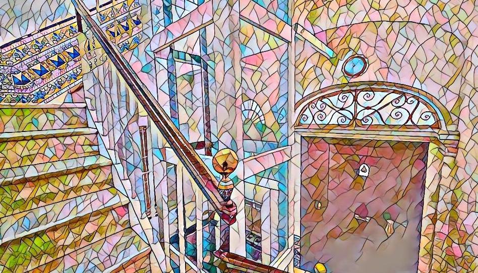 - Escalera y patio de mármol con azulejos