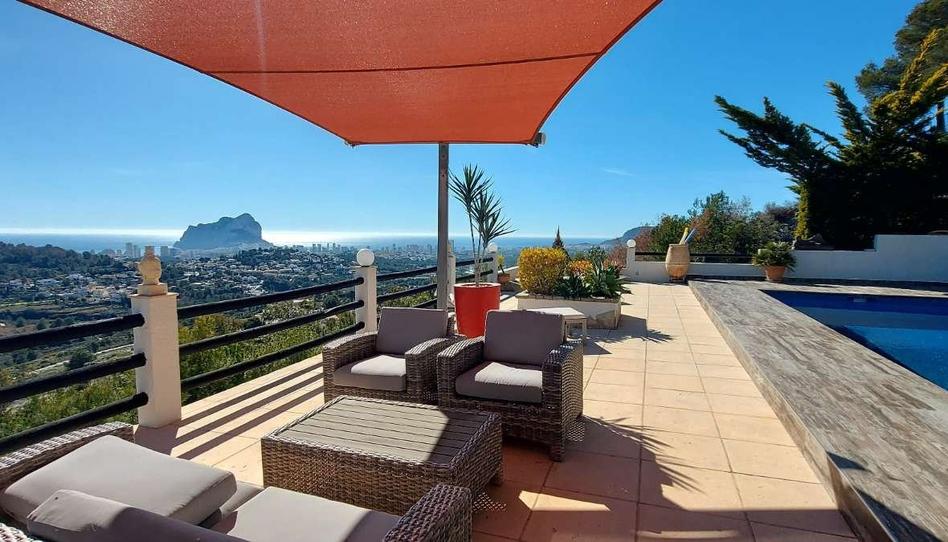 Villa en venta en Calpe situada en una zona residencial consolidada, a 5 Km del centro urbano de Calpe y de sus magníficas playas, todo tipo de comercios, servicios médicos y una amplia oferta de ocio y restauración.La villa se ha reformado totalmente con mezcla de estilo moderno con estilo mediterráneo y disfruta de unas magníficas e increíbles vistas panorámicas al mar, al Peñón de Ifach y a todo Calpe. Muy, muy luminosa (orientación Sur) y muchísima privacidad-La villa se ha construido en una amplia parcela de 2.100 m2 y tiene una superficie construida de 184 m2. Distribuida en 2 plantas:- En la planta principal tenemos el porche y un amplio vestíbulo de entrada, dormitorio principal con baño en-suite y amplios armarios, trastero-despensa, amplio salón-comedor-cocina (65 m2) y porche que se fusiona con la impresionante terraza exterior de 216 m2 con piscina rectangular de 8x4 metros, un porche de madera con zona de chill-out y relax, ducha exterior, aseo, cocina de verano y barbacoa, lavadero-sala de máquinas y un trastero que también hace funciones de cuarto dormitorio auxiliar. Se accede a la planta alta a través de una escalera interior.- En la planta superior tenemos el pasillo, 2 amplios y luminosos dormitorios y 1 baño con plato ducha.La villa ha sido recientemente renovada en su totalidad y destaca por sus vistas, por su luz, por su tranquilidad y privacidad y por sus magníficas zonas exteriores.Está equipada con calefacción central (sistema aerotermia de bomba de calor que ofrece la mayor eficiencia y mejor rendimiento) y con aire acondicionado. También dispone de amplia zona de aparcamiento exterior para 2 vehículos (cubierta tipo vela) ubicada estratégicamente junto a la entrada principal. El jardín de bajo mantenimiento, con muchas plantas, cascada en la zona de la piscina y terraza chill-out para disfrutar de los más de 300 días de sol al año que le ofrece Calpe.Le invitamos a conocer esta magnífica villa. No le defraudará.