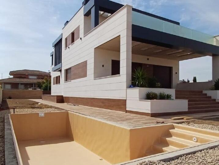 El acceso mediante rampa y las amplias zonas exteriores facilitan la vida a personas de cualquier edad. Rodeando la casa, un jardín de bajo mantenimiento con olivo protagonista, gravas decorativas y agradables terrazas donde desayunar al sol, leer o teletrabajar en calma. La piscina privada, con iluminación integrada, se convierte en el centro de las reuniones familiares y las tardes de verano.