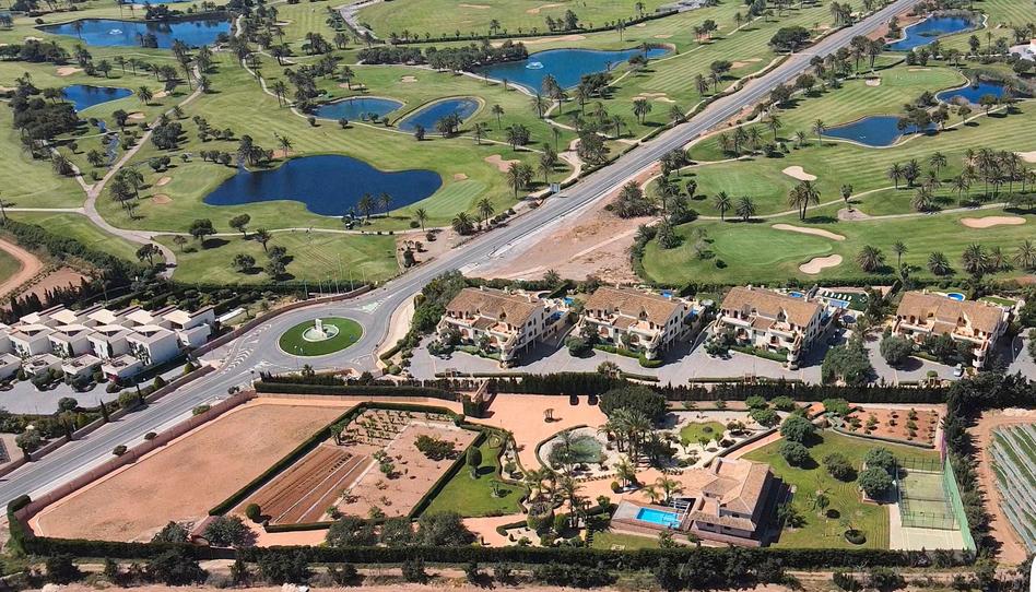 EXCLUSIVA FINCA CON CHALET UBICADO EN LA MANGA CLUB. El terreno Consta con una superficie de 13.107m2/aprox., en el cual hay construido una Amplia Villa independiente con una superficie de 800m2/aprox., distribuida en amplias estancias y tres plantas comunicadas entre sí por escalera interior y ascensor, consta de salón con salida a amplio porche de entrada, cocina con despensa y lavadero, cuatro dormitorios uno de ellos con vestidor y suelo de baño radiante en suite, el resto de dormitorios con varios armarios empotrados, todos ellos también disponen baño en suite, salida a terraza con vistas al Mar Menor; en la planta principal existe también un baño auxiliar y despacho. La Villa dispone de persianas eléctricas, calefacción con caldera de gasoil, generador de corriente por gasoil para el propio suministro, todo esto instalado en sótano junto con tres cuartos trasteros, cuarto para personal de servicio y barra de bar. También dispone de bodega con vinos de elaboración propia provenientes de la vid que se cultiva en la zona de viñedo de la finca, situada junto a otras zonas de cultivo de árboles frutales, hortalizas y verduras para autoconsumo. En la parte exterior también existe una pista de pádel, baloncesto y piscina climatizada al aire libre así como tres lagos encauzados rodeados de diferente tipo de vegetación perfectamente cuidada y que hace del lugar un paraíso único para disfrutar.