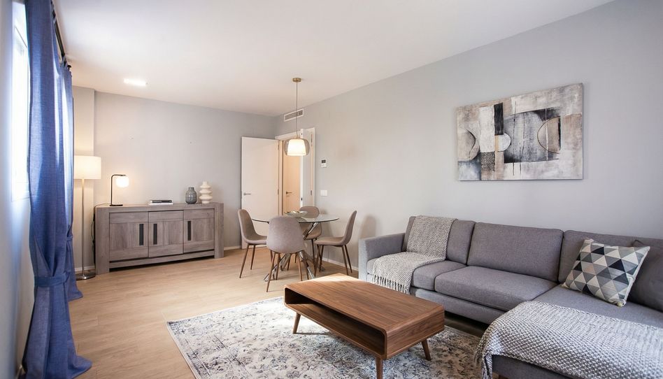 La sala de estar, espaciosa y luminosa, se convierte en el corazón del hogar gracias a sus grandes ventanas que permiten la entrada de luz natural durante todo el día, creando un ambiente cálido y acogedor.