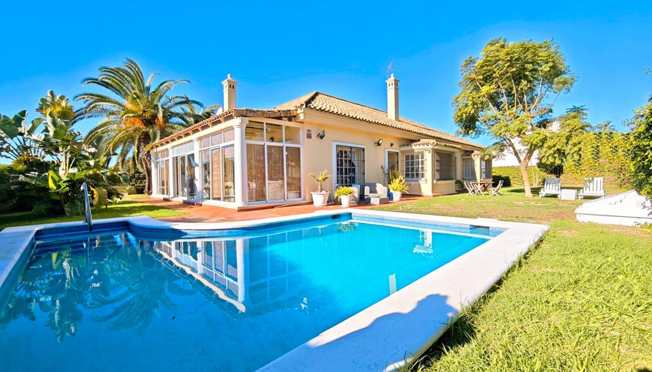 F2338.- INMUEBLE EN EXCLUSIVA. PUERTOHOUSE. Se vende impresionante chalet en la zona del Novo Sancti Petri, en Chiclana de la Frontera, ubicado en una zona residencial exclusiva, cercana a la playa y al campo de golf, dentro de un entorno residencial muy tranquilo y muy bien cuidado. Por favor, contacten en horario comercial, preferiblemente por Whatsapp al teléfono 607265865 (PUERTOHOUSE), vivienda ubicada en una parcela de 1.000 m2, con una construcción en una única planta que permite evitar así la incomodidad de las escaleras, con una superficie construida de vivienda de 309 m2, distribuidos de la siguiente manera: amplísimo hall de entrada y pasillo distribuidor, que da amplitud y luminosidad a toda la casa. Cuenta con 6 amplios dormitorios, cada uno de ellos con equipado con grandes armarios empotrados y perfectamente acondicionados tanto para el verano mas caluroso, como para el gélido frío del invierno. Destaca por sus dimensiones el dormitorio principal, el cual es realmente grande y en el que se ubica un armario de ocho puertas. Además, la casa dispone de 5 cuartos de baño completos, repartidos por la propiedad, todos con ventanas al exterior para evitar humedades innecesarias, y estando situados dos de ellos dentro de sus respectivos dormitorios, a modo de suite (en el principal y en el siguiente más grande). En cuanto a la cocina, esta también resalta por su gran tamaño y amplitud, con mucha luz natural, que entra sobre todo por su cristalera tipo “windows”, situada en la zona destinada a comedor. Como complemento de esta, cuenta con una buena despensa en su interior. Completa el conjunto un enorme y luminoso salón, con tres orientaciones, chimenea y perfectamente acondicionado para cualquier época del año, con salida a un enorme porche de 24m2, bien acondicionado, y el cual está dotado de grandes cristaleras desde las que poder ver y acceder al jardín exterior y a su bonita piscina. Ya en el exterior, se puede disfrutar de un precioso jardín, con arboles y palmeras, acompañado de una entrada a la propiedad muy “señorial”, la bonita piscina de agua dulce (de 45 m2), bien ubicada al sol, la zona de aparcamiento, y un trastero para enseres del cuidado del exterior. Se trata de un inmueble pensado para el disfrute de toda la familia y amigos, ideal para familias grandes, o para recibir visitas, muy bien ubicado en un residencial exclusivo y con mucha privacidad. Precio de venta 1.400.000 €. Por favor, contacten en horario comercial, preferiblemente por Whatsapp al número 6072658658 (PUERTOHOUSE)