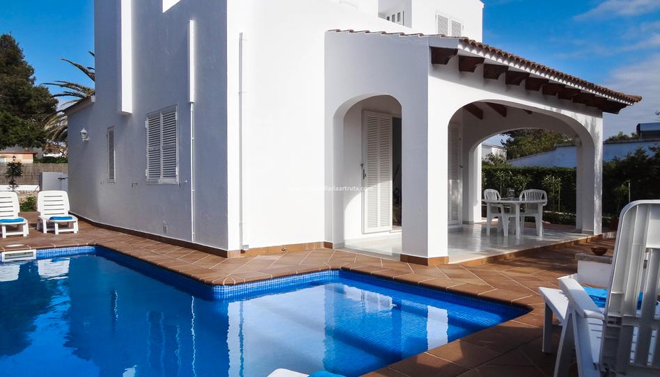 En la bonita urbanización de Cala Blanca, a unos 4 Km al sur de Ciutadella, nos encontramos con este bonito chalet con una parcela de 317 m2.