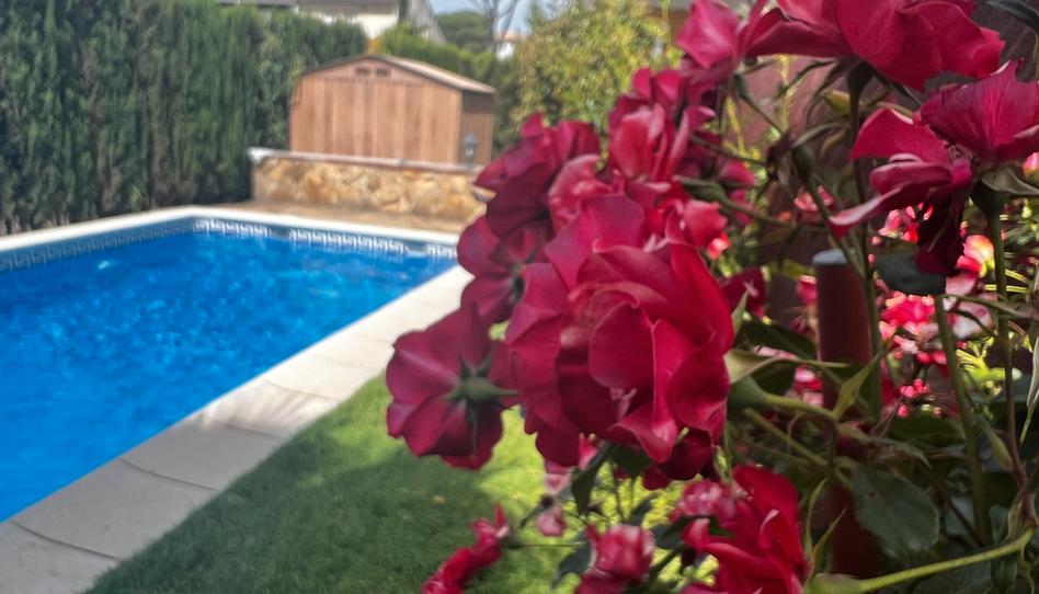 La parcela está totalmente ordenada y ajardinada, con aparcamiento, barbacoa y piscina privada, rodeada de cesped y una gran caseta para depuradora y herramientas.