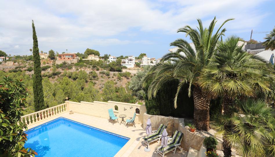 Esta villa, rodeada de un precioso jardín mediterráneo con árboles autóctonos, flores y vistas impresionantes, se encuentra en una tranquila zona del Montgó, en Dénia. Se accede a la casa por una escalera desde la calle, donde se encuentran las dos cocheras y los garajes.