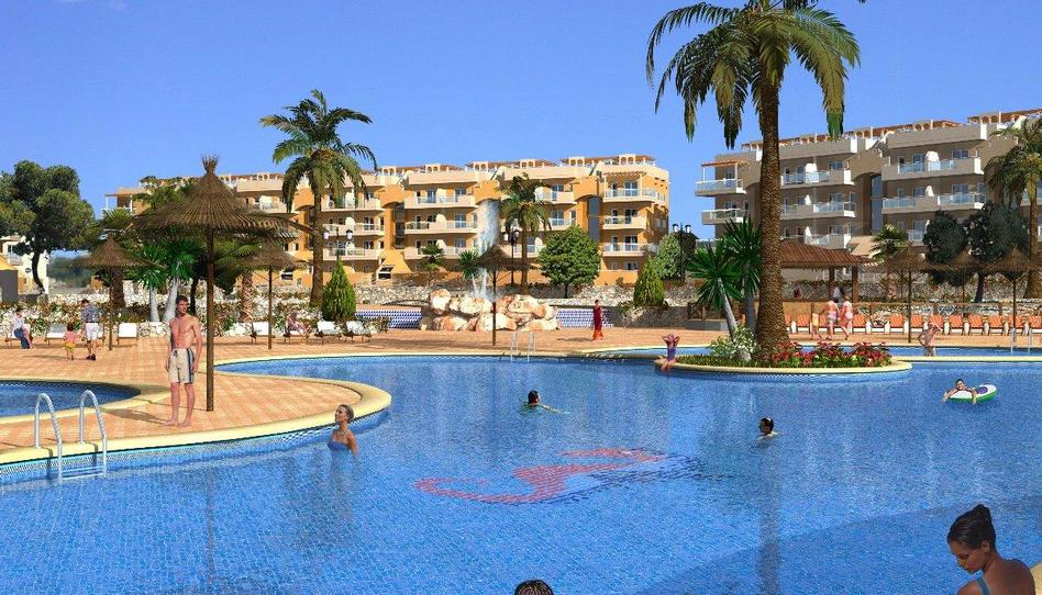 Planta baja en Almerimar Urbanización Laguna Beach. 80 m2. 30 m2 de terraza con vistas al mar. a 50 metros de la playa. Salón, cocina independiente con pasaplatos amueblada con electrodomésticos, 2 dormitorios y 2 baños. En buen estado. Puertas de roble, suelos de gres, ventanas climalit. 2 armarios empotrados. Pre-instalación de aire acondicionado B/C en el saló. Bajo con ascensor. Orientación sur. Soleado. Plaza de garaje y trastero incluidos en el precio. Residencial con gimnasio, sauna, bar-cafetería, zonas infantiles, etc...