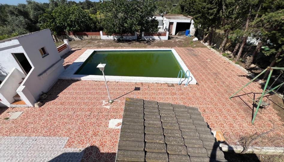 Piscina y zona de ocio con arboles frutales.