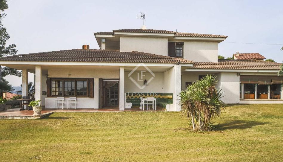 En la parte trasera de la casa principal hay un anexo, actualmente destinado a aparcamiento. En la parte delantera podemos encontrar una zona con árboles frutales, una pista de tenis y una piscina de 22 x 10 m con vistas preciosas al mar, todo ello rodeado de aproximadamente 5.000 m² de jardín con riego por aspersión.