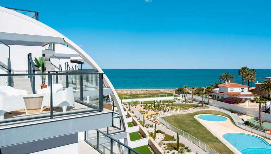 Fantástico ático de lujo con vistas panorámicas al mar, en primera línea de la playa de arena de Playa de la Almadraba, situado en el moderno complejo de Taylor Wimpey Bella Beach. Este exclusivo ático tiene impresionantes vistas al mar desde todas las habitaciones y también cuenta con una terraza en la azotea de nada menos que 94,85 m2 donde se puede disfrutar de espectaculares vistas de 360°. Al este, la costa se extiende hasta Gandía, al oeste las torres de la montaña del Montgó, al norte se ve directamente el mar y al sur tiene vistas a la impresionante Sierra de Segaria.
