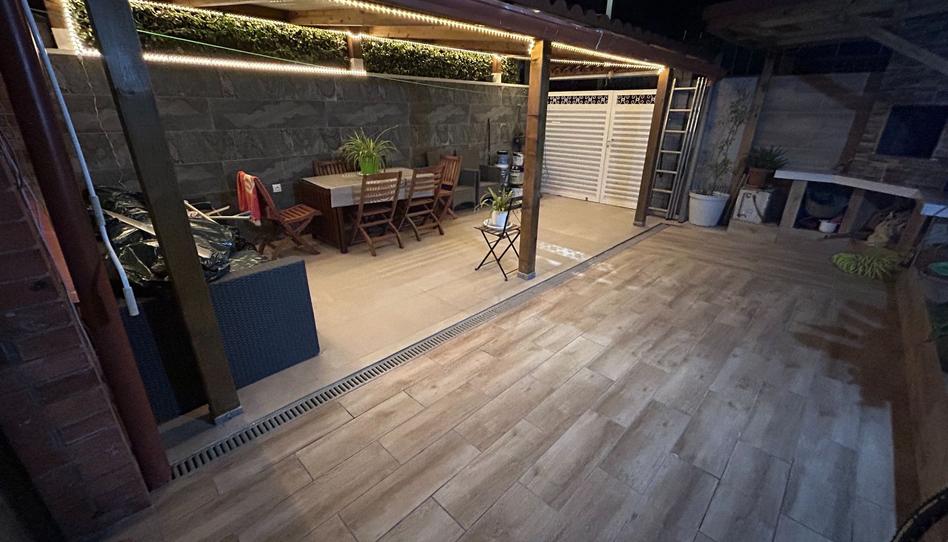 Zona del patio con BBQ de obra, posibilidad de entrada para coche, terraza en la parte de arriba.