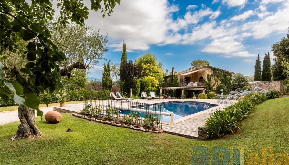 Exclusiva Apialia. Les presentamos Can Mademón, una bonita masia situada en Esponellà, La propiedad se encuentra sobre un terreno de 10.000 m2 de exuberantes jardines y bosque, vistas a la montaña y cerca del rio Fluvià, a 10 minutos del lago de Banyoles 20 de Girona ciudad, 35 de Sant Pere Pescador (costa brava) y 90 minutos de Barcelona, consta de amplios espacios, ideales para la relajación, y paz para el alma, su distribución tradicional de dos plantas, con bóveda de piedra, un salón de doble altura, varios porches, y terrazas que integran el espacio con la naturaleza. La planta principal incluye una moderna cocina completamente equipada, un precioso comedor, dos salones, dos habitaciones dobles y un baño completo con ducha. En la planta superior encontramos otras tres habitaciones dobles, una de ellas con salida a una espectacular tarraza privada, con vistas a la piscina y al jardín, un amplio salón de invierno y el segundo baño completo. Las zonas exteriores son excepcionales, la piscina climatizada de 50 mtrs2. con espacio para tumbonas se integra en el bonito jardín . Junto a la piscina encontramos una zona de barbacoa con horno de leña y un espacio bajo los arboles, que nos proporciona una sombra ideal para disfrutar de reuniones de empresa, amigos, y familiares. La masía se encuentra Ubicada en una zona repleta de productores de aceite de oliva, quesos, miel, vino, y una rica zona gastronómica.