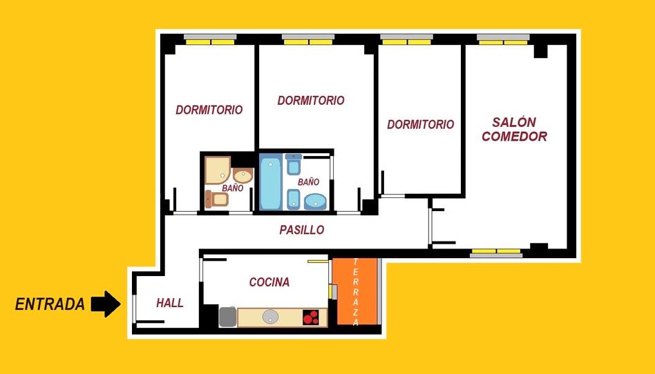 Es un piso de 78, 30m. útiles muy luminoso, totalmente exterior y soleado.