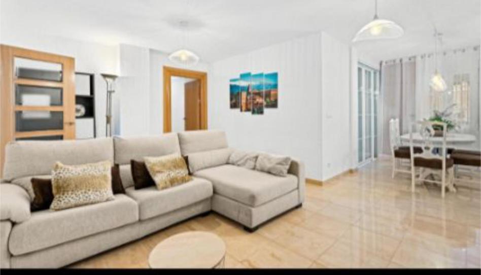 Cuenta con tres habitaciones muy amplias, dos cuartos de baño completos, cocina enorme con zona para comer, salón con dos ambientes y terraza exterior con unos 25 metros de césped artificial.