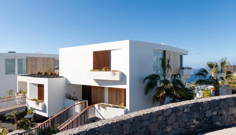 La propiedad se distribuye en dos niveles y cuenta con tres dormitorios, todos ellos con baño en suite y armarios empotrados. En la planta superior se encuentra la entrada principal, un pequeño hall y la suite principal, que dispone de terraza privada y espectaculares vistas al océano Atlántico y a la isla de La Gomera. La planta inferior alberga un amplio y elegante salón-comedor con grandes ventanales de suelo a techo que se abren a una soleada terraza y a un jardín privado con césped natural, desde donde también se disfrutan magníficas vistas al mar. La cocina abierta, luminosa y totalmente equipada responde a los estándares más actuales del complejo. En este mismo nivel se sitúan los otros dos dormitorios dobles, ambos con baño en suite.
