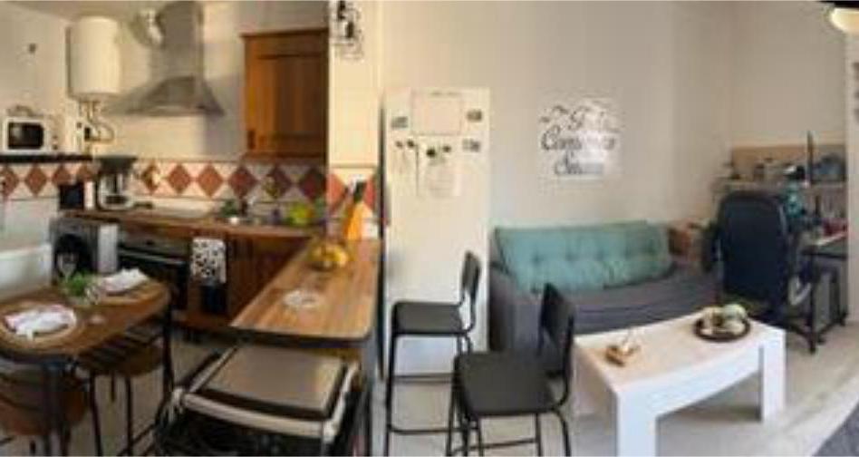 La vivienda cuenta con 49 m² construidos y se distribuye en cocina-salón, separada mediante una práctica barra americana, un dormitorio y un baño completo con bañera. Dispone de suelos de mármol, que aportan elegancia y frescura, y ventanas con doble acristalamiento Climalit, garantizando un buen aislamiento térmico y acústico.