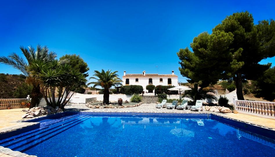 En el exterior, la finca se asienta sobre aproximadamente 18 hectáreas de terreno natural que requiere un mantenimiento mínimo, con almendros, olivos, granados e higueras. Un amplio camino de entrada privado conduce a la casa y al garaje, y hay una piscina de 12 x 5 metros.