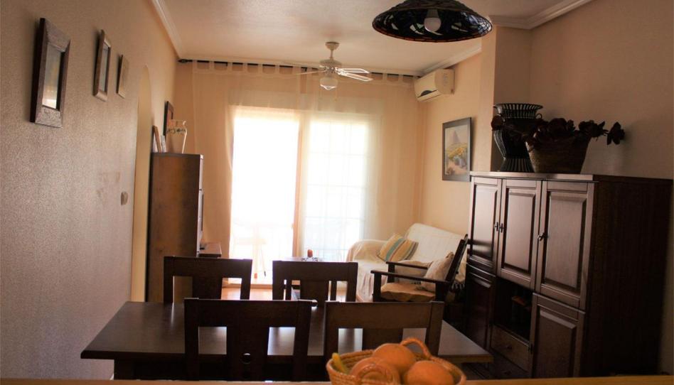 Estupendo ático en Los Narejos con plaza de garaje incluida en el precio y solarium privado de la vivienda. Se entrega completamente amueblado, incluido electrodomésticos. Aire acondicionado con bomba de frio y calor. Dispone de una gran terraza y ascensor hasta los garajes, 2 piscinas y armarios empotrados en los 2 dormitorios. Toda clase de servicios en las proximidades: jardines, parque infantil, pistas polideportivas, farmacia, colegios, hipermercados, restaurantes. A 5 minutos de la playa y a 15 minutos de cartagena por autovía.