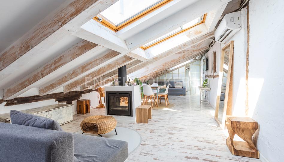 El moderno salón comedor, con su cocina americana integrada ha sabido combinar lo moderno con lo histórico conservando sus vigas de madera originales que junto con sus ventanas de velux nos inunda de luz desde primeras horas del dia