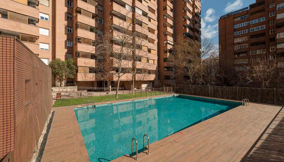 Bonita piscina rodeada de áreas verdes, con cuartos de baño. El parque infantil, al igual que todo el exterior de la urbanización, han sido reformados.
